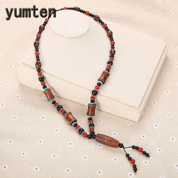 yumten bead chain necklace power gemstone agate pendant punk women jewellery red beaded black round chain plain color friendship, Silver