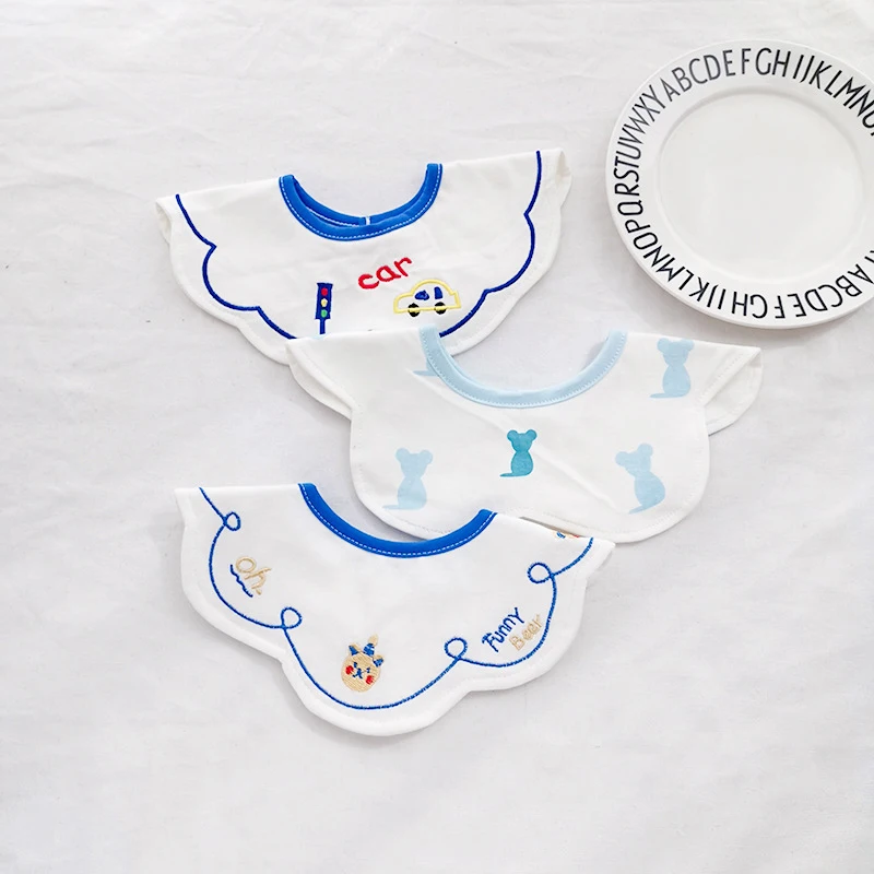 3Pcs Set INS Style Newborn Baby Bibs Cotton Embroidery Waterproof Burp Cloths New Arrival Spring Saliva Towel Accessories