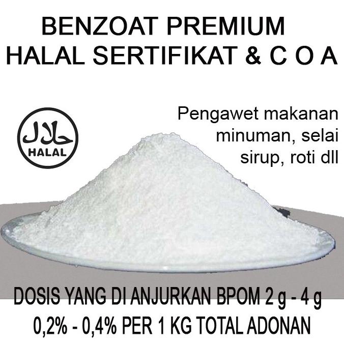 Pengawet Makanan dan minuman food grade - cocok digunakan untuk mengawetkan aneka makanan dan minuman seperti syrup, manisan, selai, saos, minuman dalam kemasan, sambal, makanan yang sifatnya asam dll. Berbentuk serbuk atau granula berwarna putih berbau khas. Larut air.